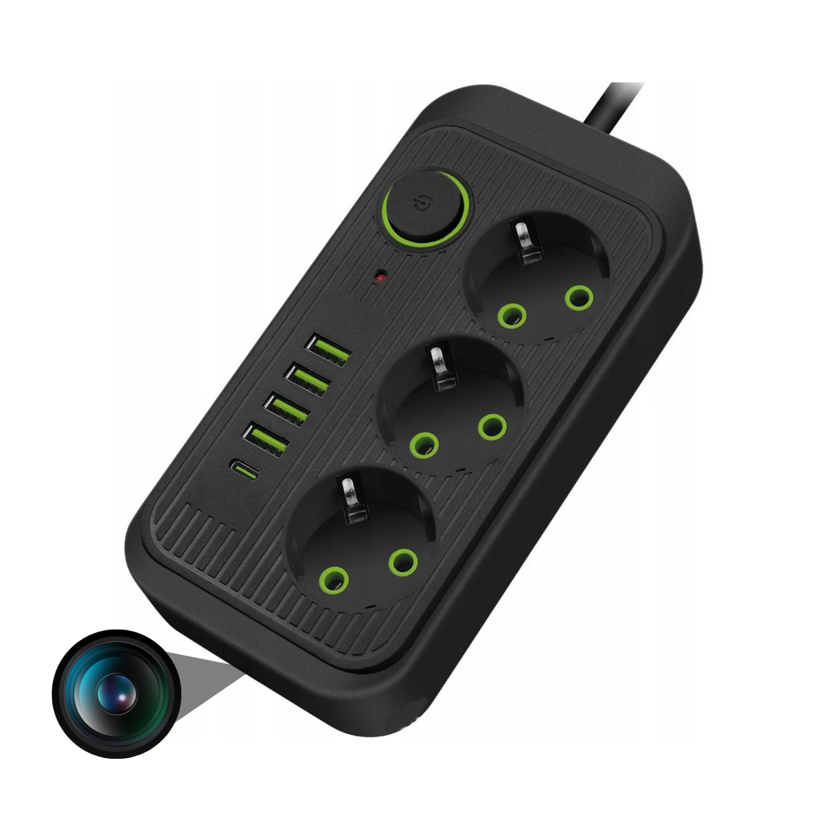 Poznaj nowoczesne rozwiązanie łączące bezpieczeństwo i wygodę! Nasz przedłużacz nie tylko umożliwia zasilanie wielu urządzeń jednocześnie, ale również zapewnia dyskretne monitorowanie dzięki wbudowanej kamerze w obudowie.