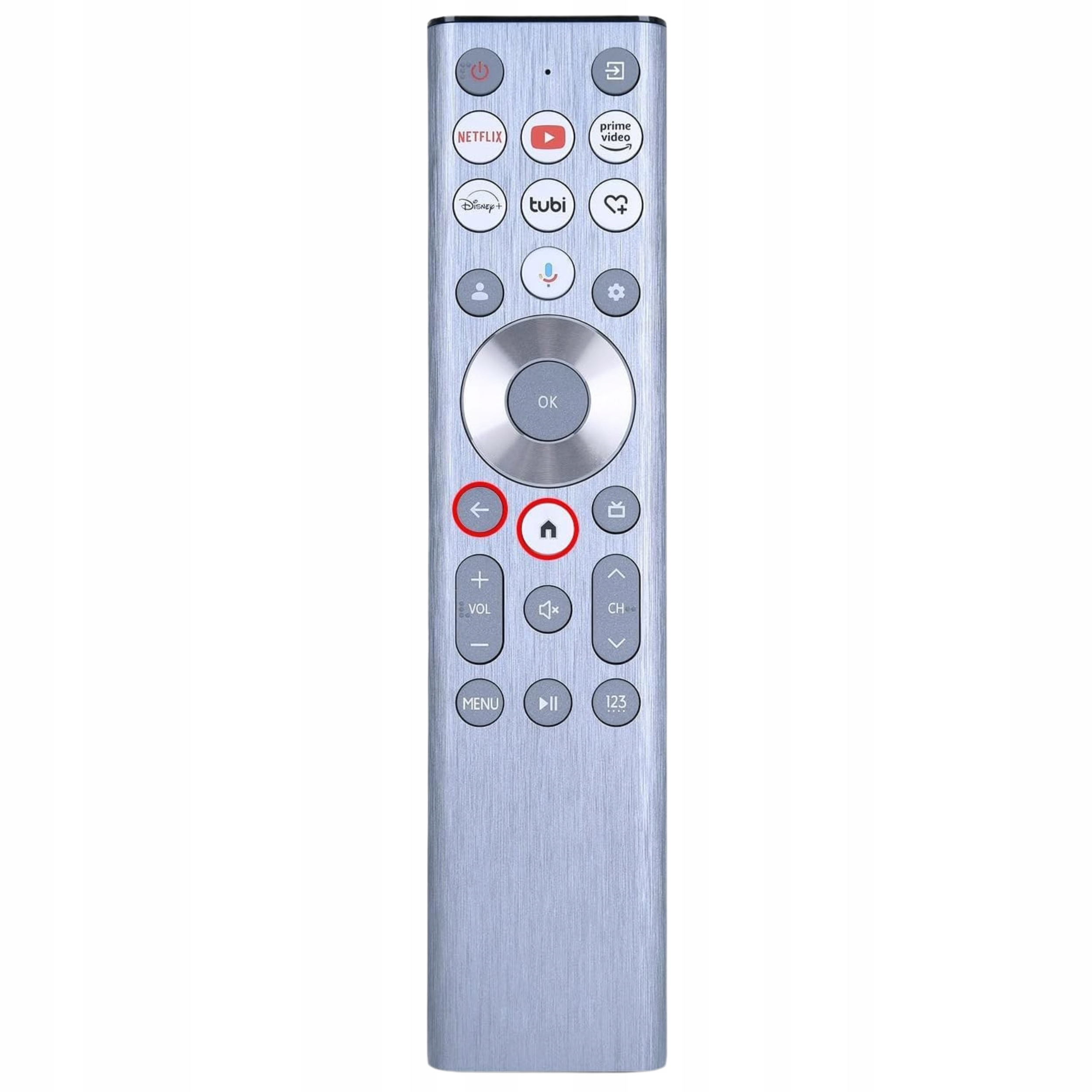 Naciśnij i przytrzymaj jednocześnie przyciski „Wstecz” i „Dom” na pilocie przez co najmniej 3 sekundy aby rozpocząć parowanie, aż lampka kontrolna na ekranie telewizora zacznie migać