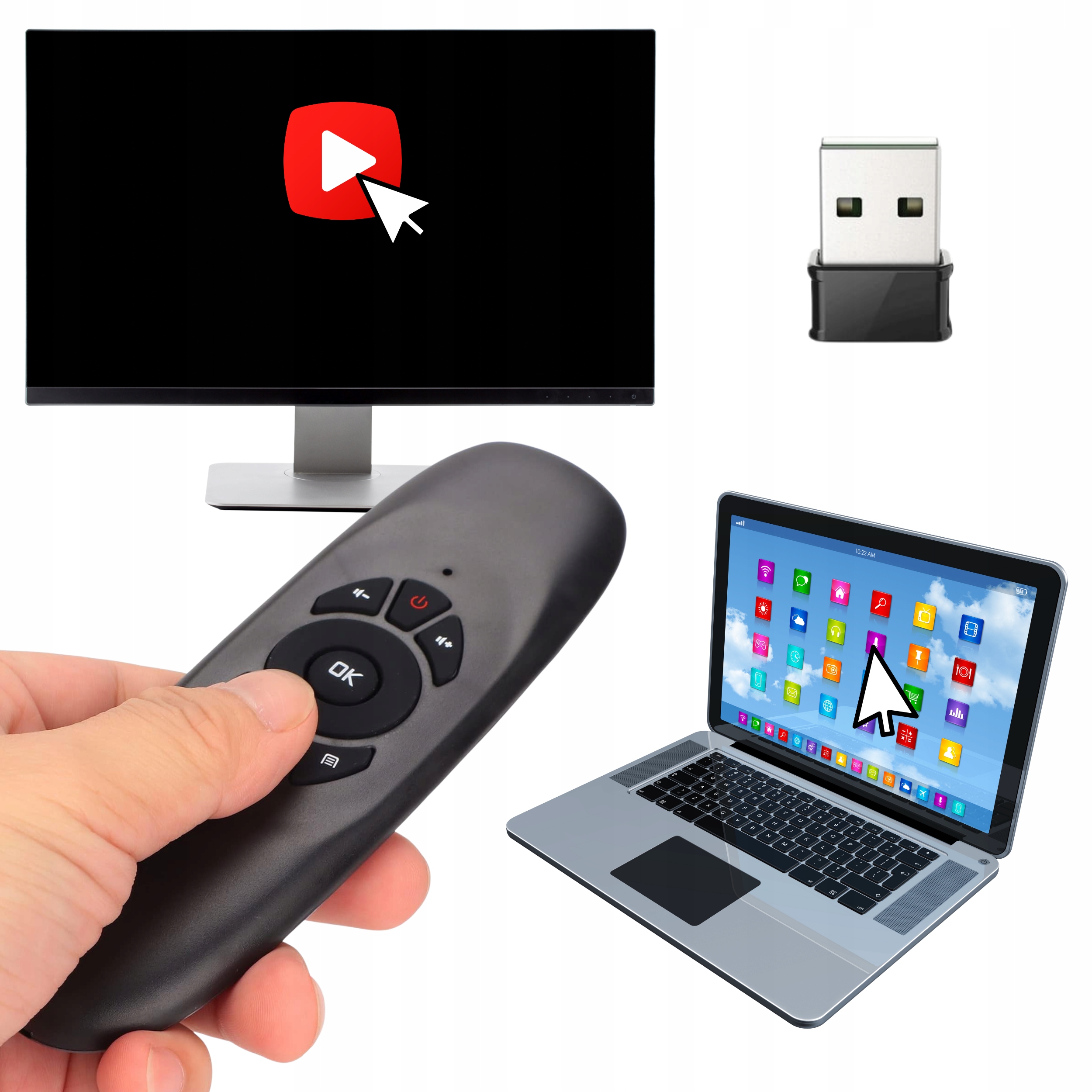 - Air Mouse – kursor reaguję na ruchy Twojej ręki, jak w prezentacjach multimedialnych
