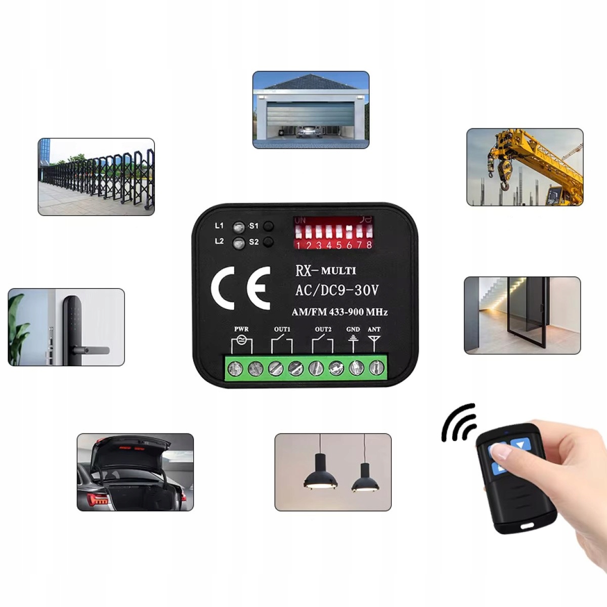 Wystarczy kilka chwil, aby go zaprogramować metodą DIP SWITCH. Kompatybilny z prawie wszystkimi napędami popularnych marek w zakresie częstotliwości 433-900 MHz.