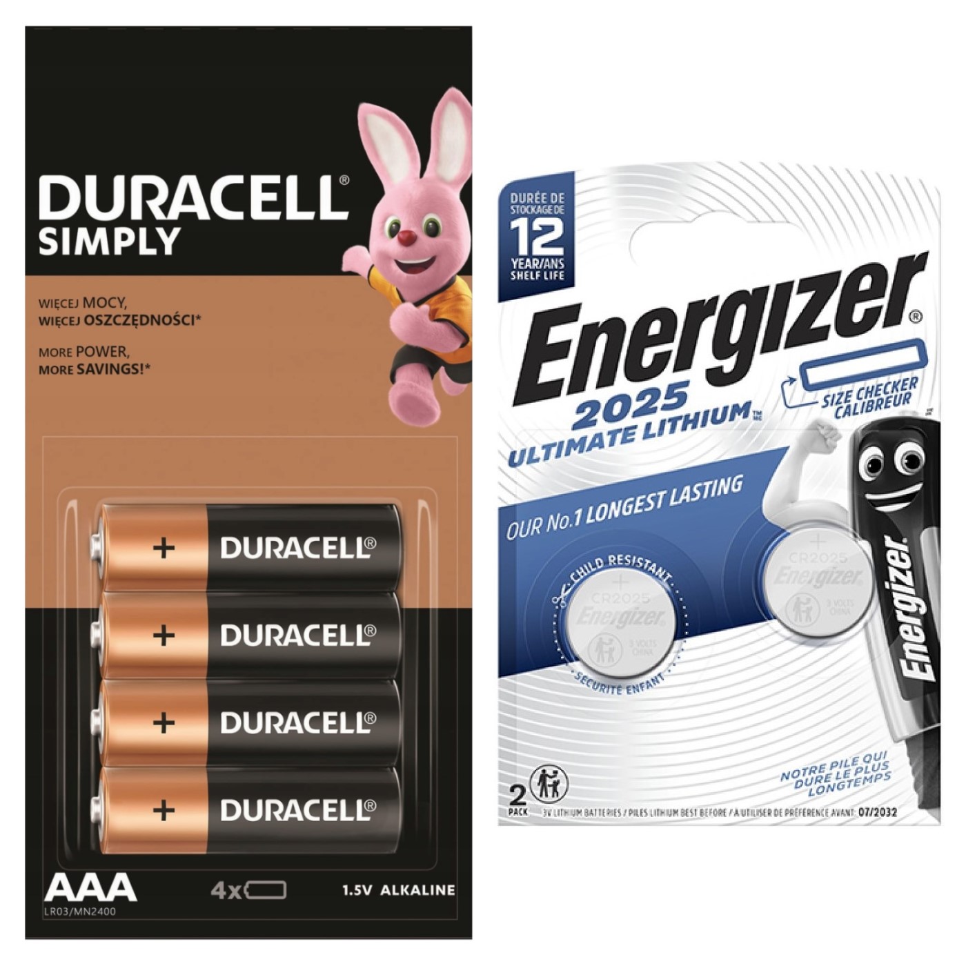 BATERIE DURACELL 4xAAA + ENERGIZER 2xCR2025 6 SZTUK